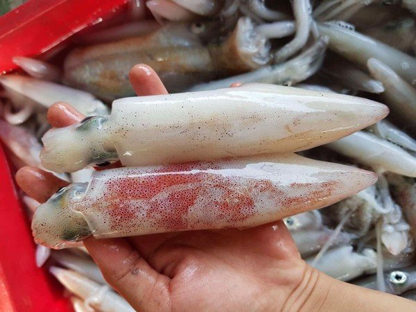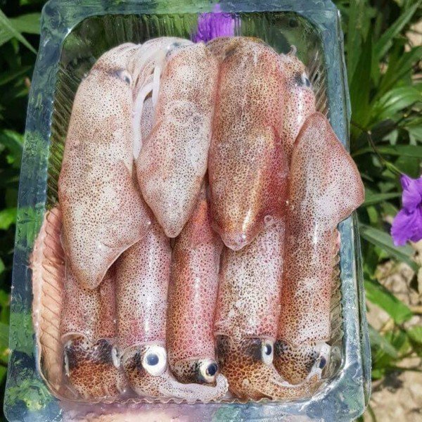 Mực ống nhỏ nguyên con được đánh bắt và cấp đông trên tàu chuyển vào shop, từng con mực vẫn còn tươi, cơm dày và săn chắc. Từng sớ thịt dai và ăn ngọt.